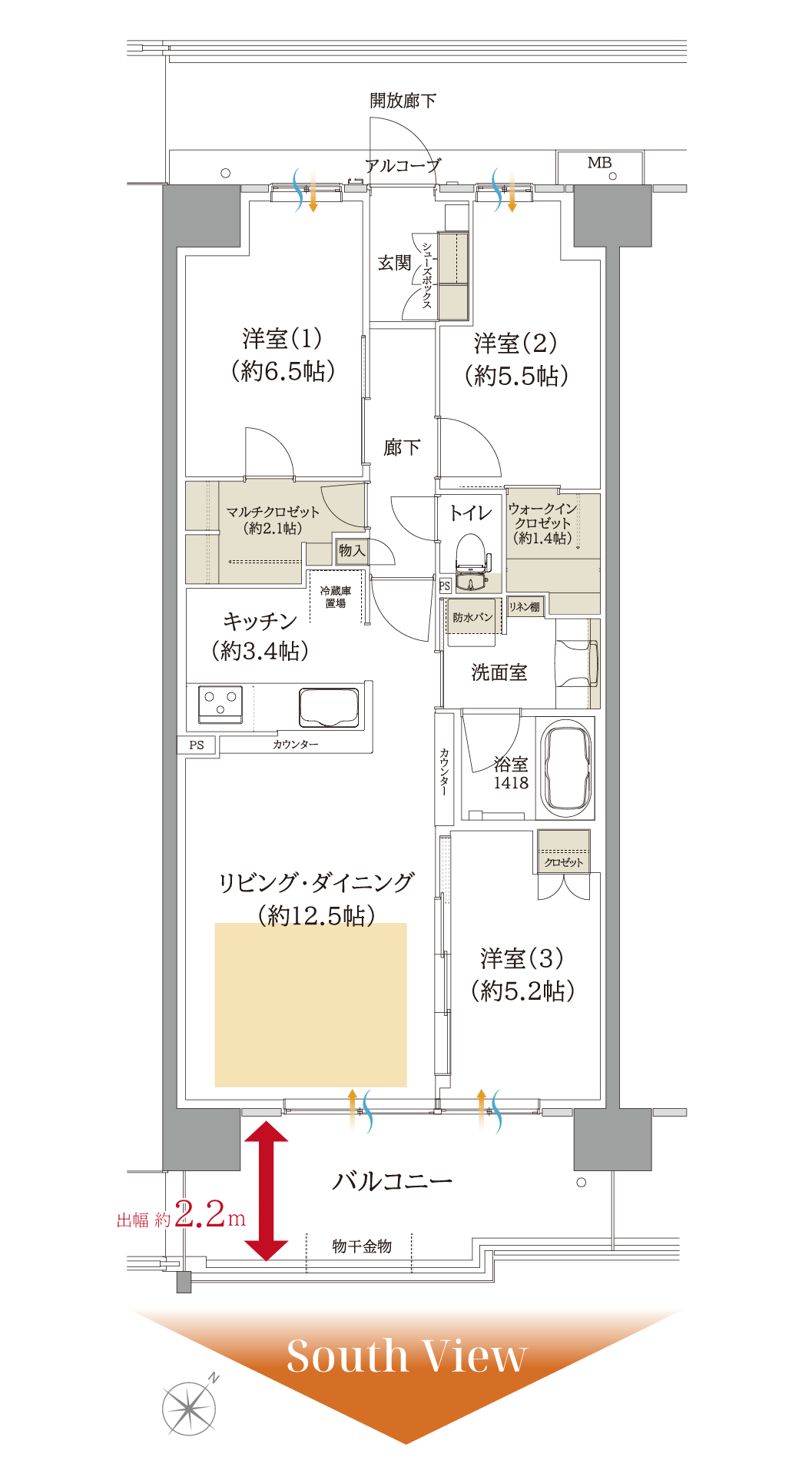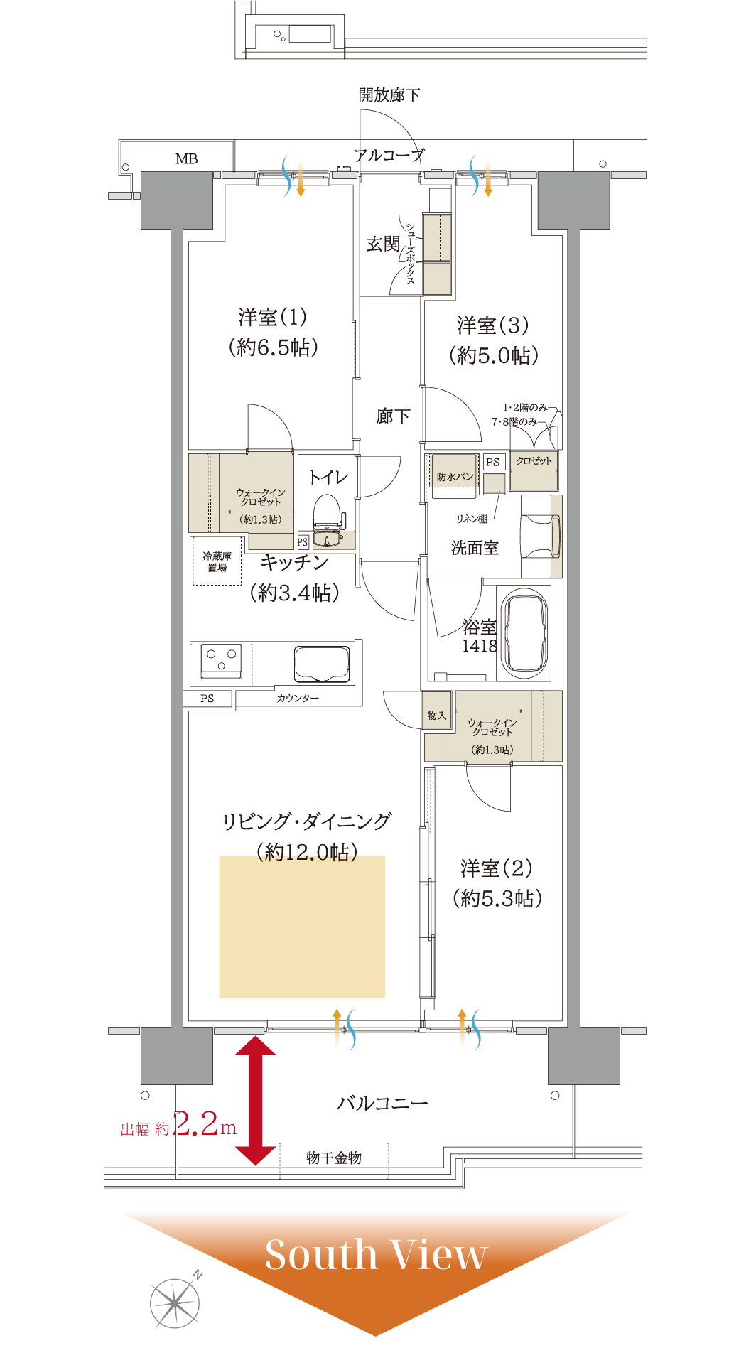 バルコニー面積(2~8階)/12.25m²(約3.70坪)
