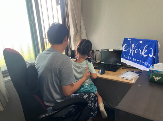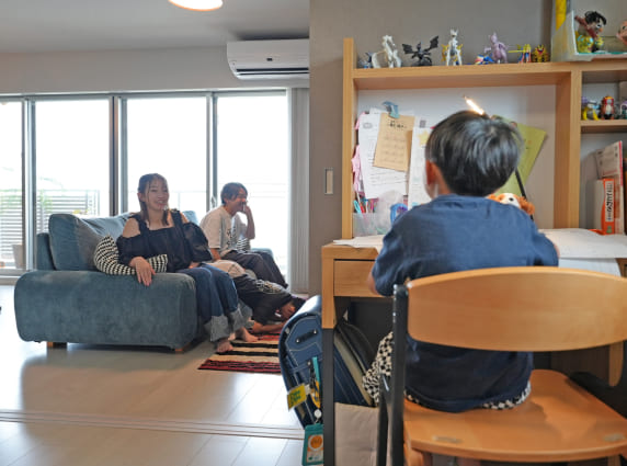 広くて、子ども達が家の中でのびのび遊べるようになったので良かったなって思います。リモートワークの部屋も設けられましたし、窓の外には山々の景色が見えて仕事の合間の休憩時間が癒されます。共用の「コワーキングスペース」も気分転換に利用したりします。他の住民の方も利用されているのを見かけますね。