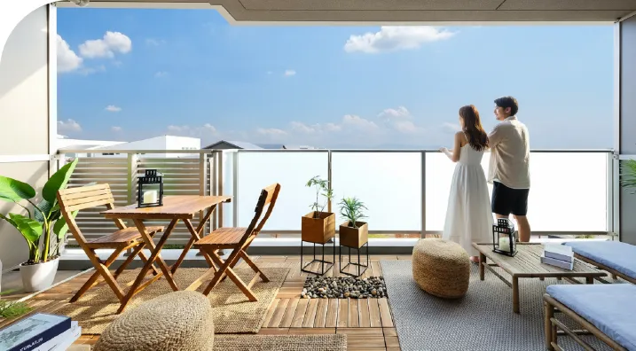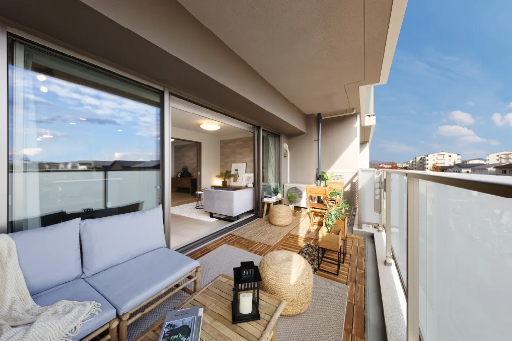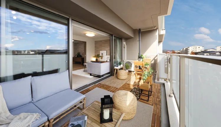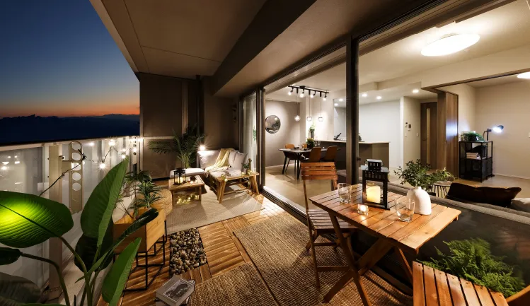 広さが生む新たな暮らし。 - リビングから段差なくフラットにつながるバルコニーは、ご家族との食事や余暇のリラックスタイムを満喫できるアウトドアリビングとして最適な空間。